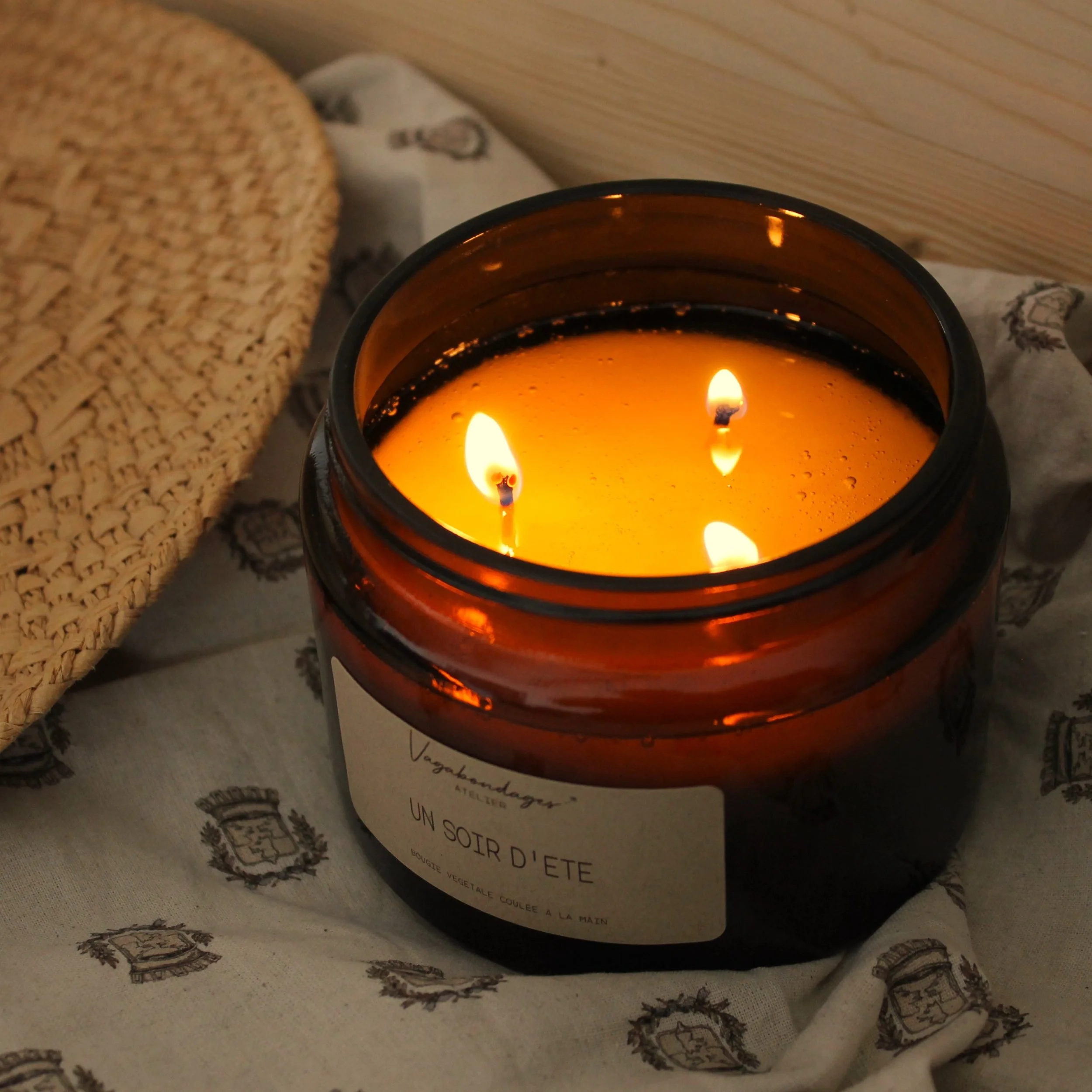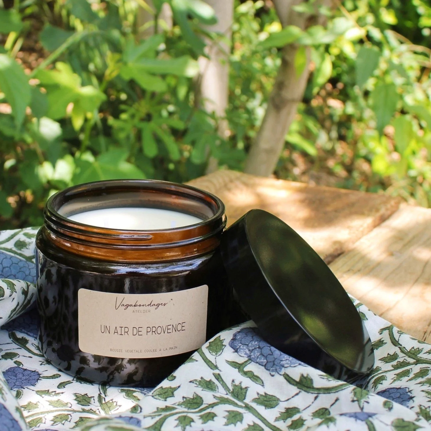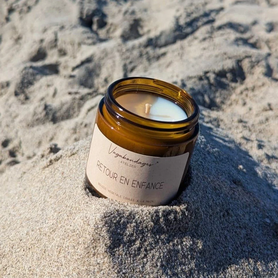 Les bougies végétales de l’Atelier Vagabondages sont coulées à la main dans une démarche écoresponsable, privilégiant des matières premières qualitatives: une cire de soja 90% française et 10% européenne sans OGM ni pesticides, certifiée ECOCERT, des fragrances produites par un parfumeur de Grasse sans substance cancérogène, mutagène ou toxique, sans phtalates, des mèches de coton non traitées et des contenants en verre recyclables