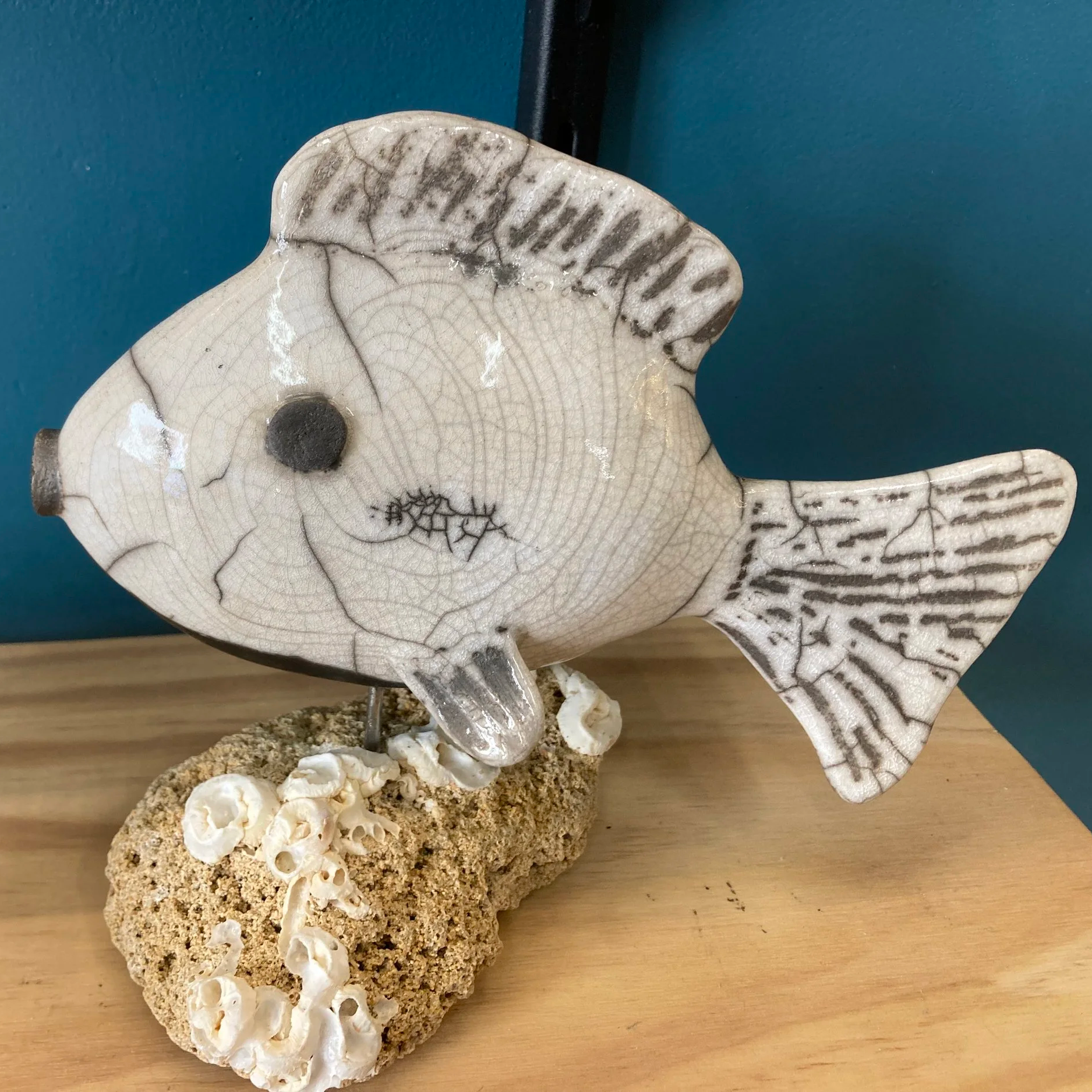 La terre d’argile est une matière qui a toujours fasciné Geneviève par sa plasticité et ses infinies possibilités. C’est à travers la technique de cuisson Raku qu’elle trouvé sa véritable voie. L’imprévu et la surprise l’enthousiasme.